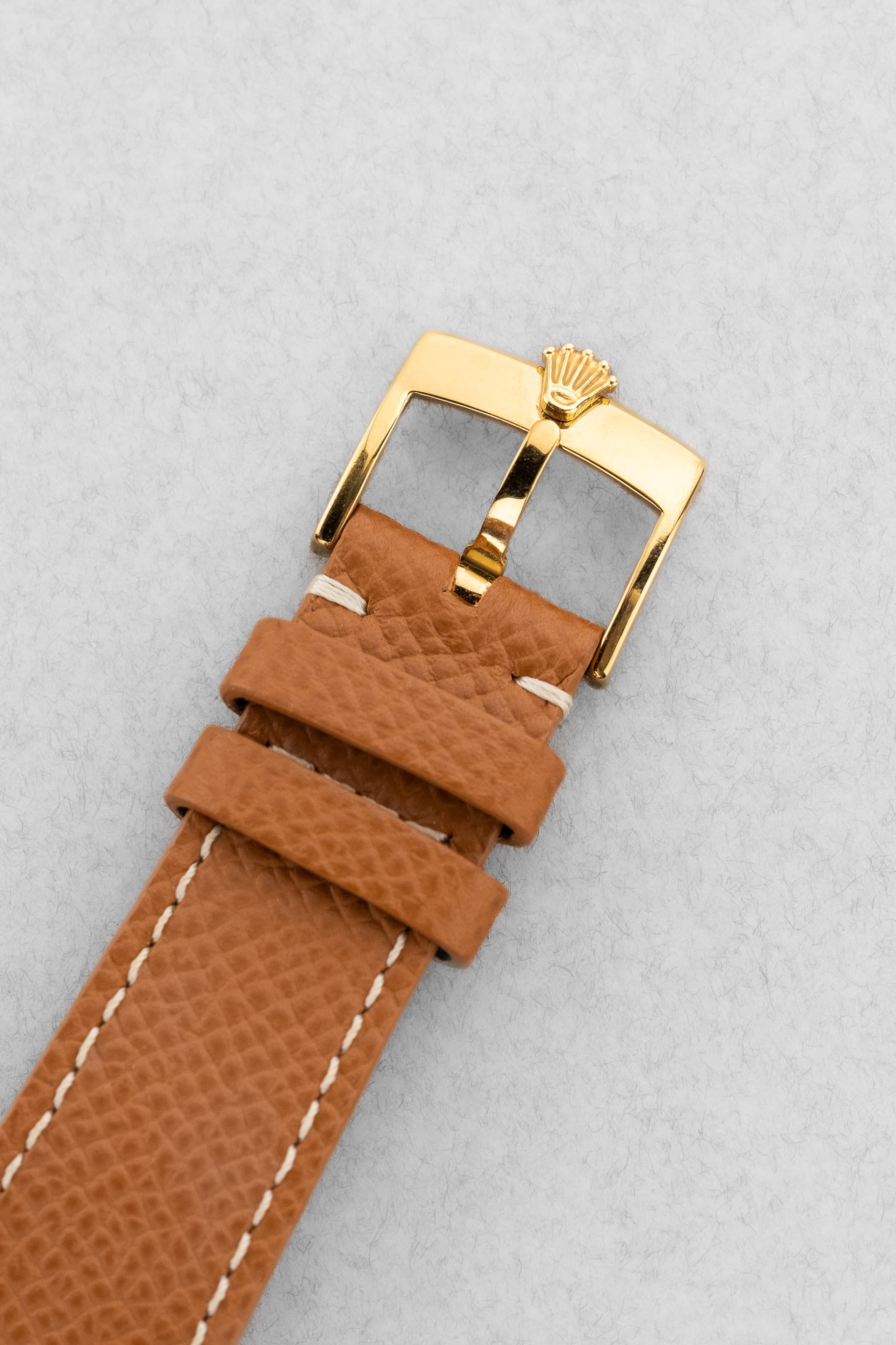 Bracelet : Bracelet Amplitude° neuf en cuir de veau grainé et boucle ardillon Rolex plaquée or jaune