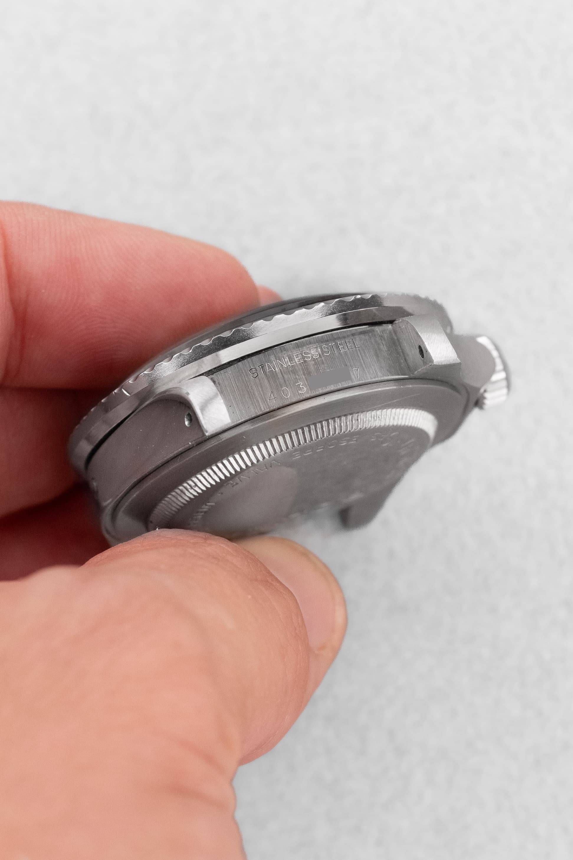 Bracelet : Rolex Oyster en acier avec fermoir de sécurité et extension de plongée, référence 93150, attaches 585, code boucle A (production en 1976)
