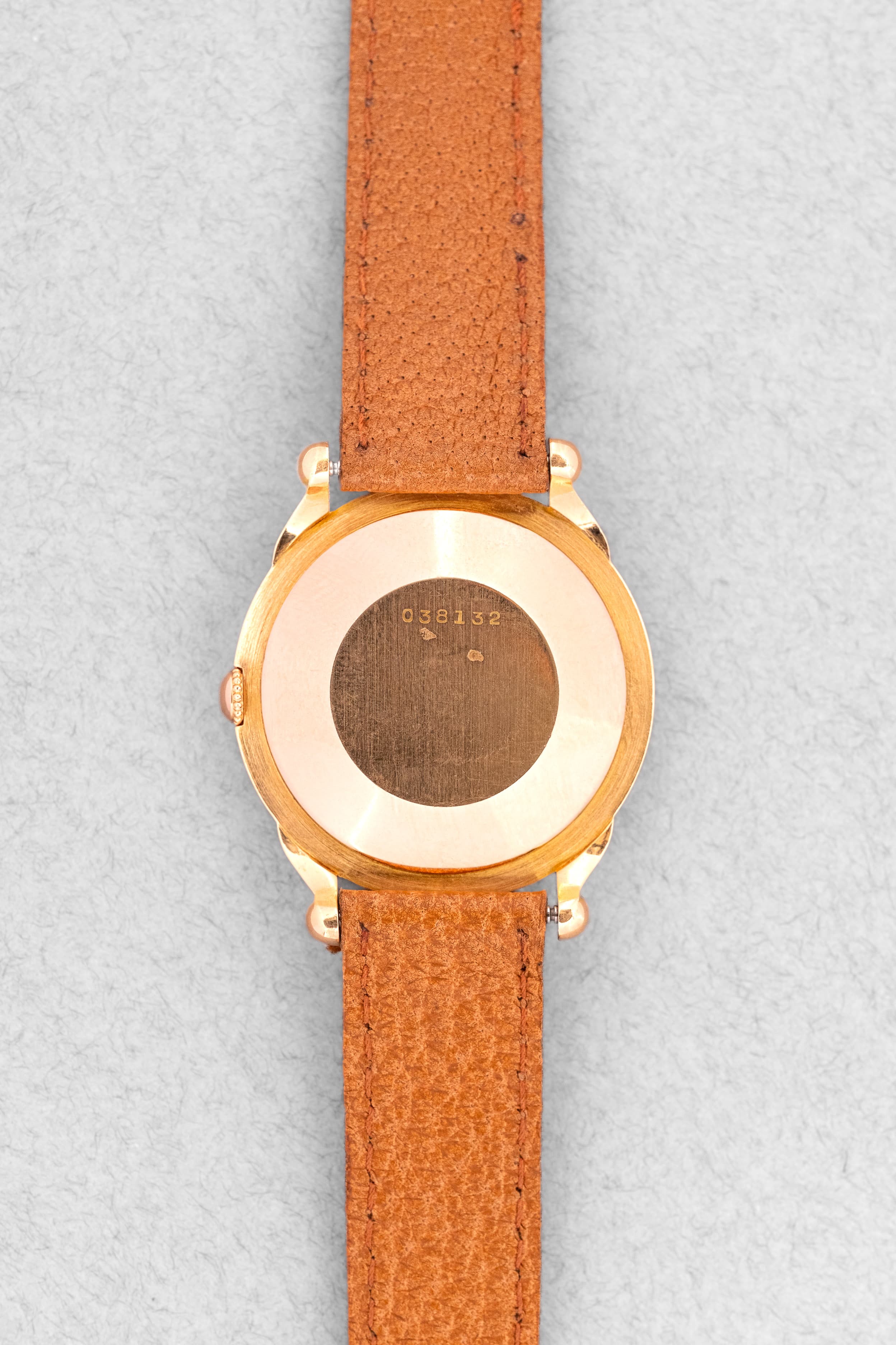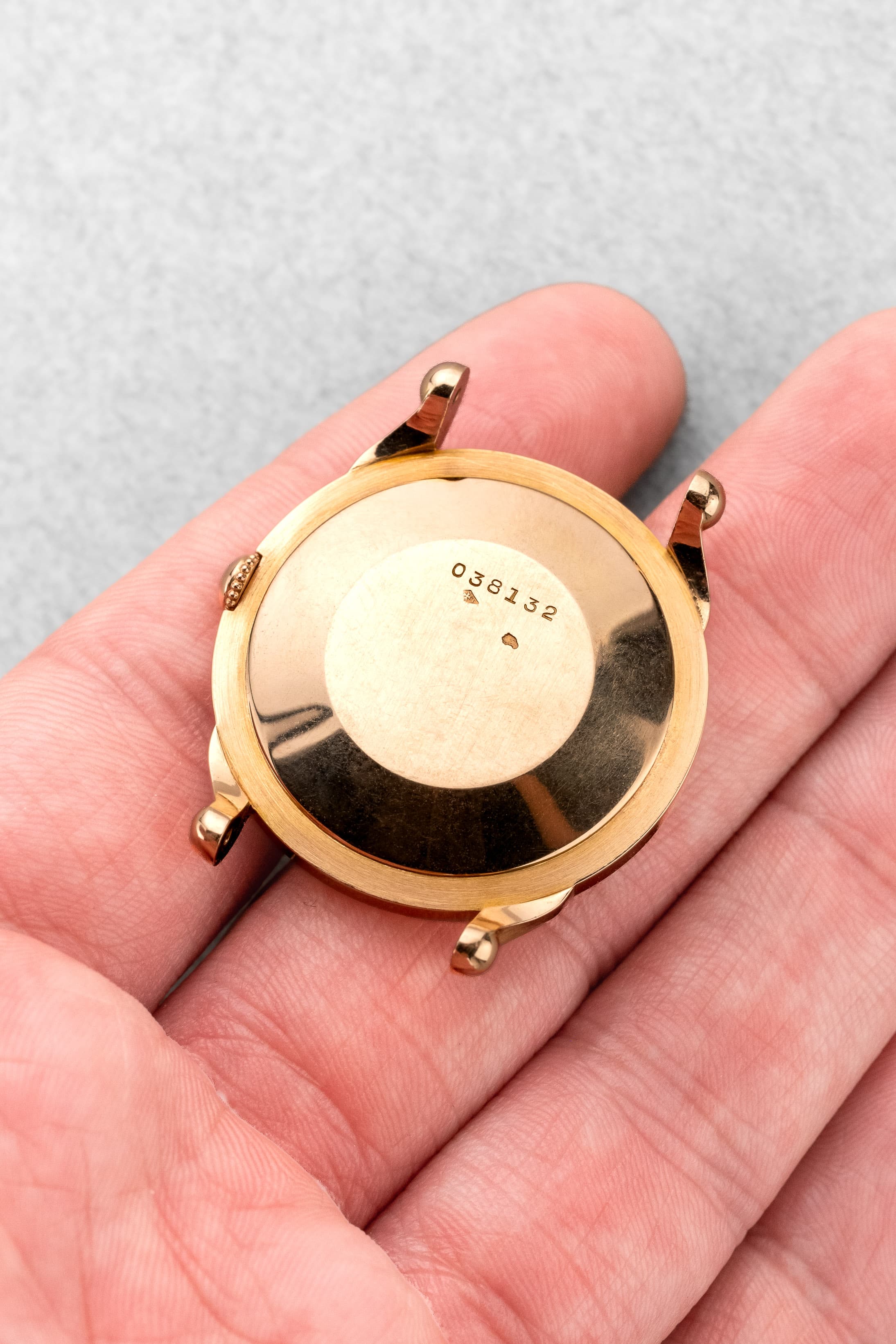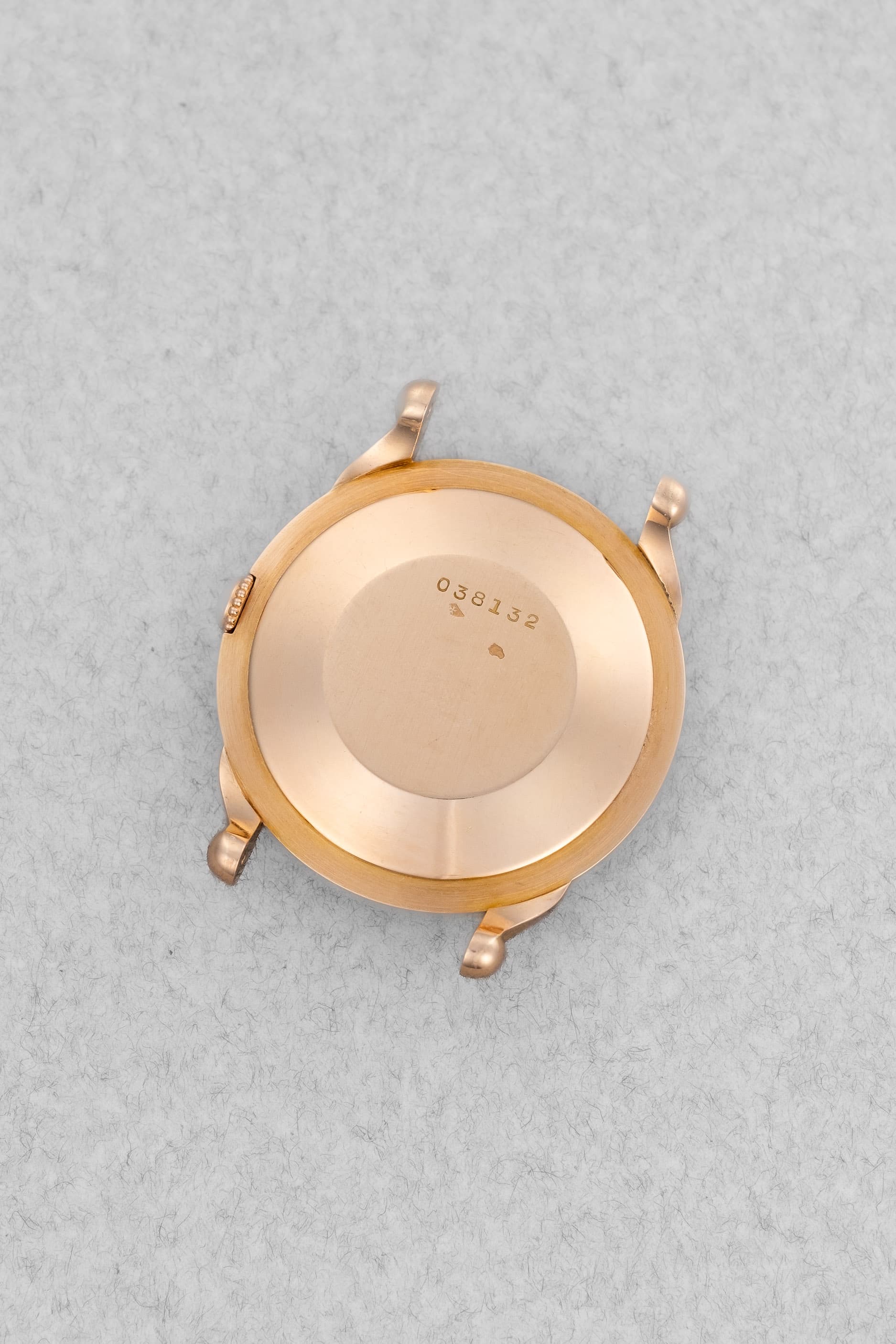 Nous sommes heureux de présenter cette superbe Vacheron & Constantin, produite vers 1949. Les cornes « goutte d'eau » – dont les galbes évoquent également des ouïes de violon – constituent l'un des designs les plus emblématiques de la maison genevoise, décliné sur ses plus belles montres habillées entre la fin des années 1930 et le milieu des années 1950. Cet exemplaire se distingue par son boîtier en or rose 18 carats de fabrication française – une exécution nettement plus rare que les boîtiers genevois habituels, et dont la qualité est souvent reconnue comme supérieure par les collectionneurs expérimentés.